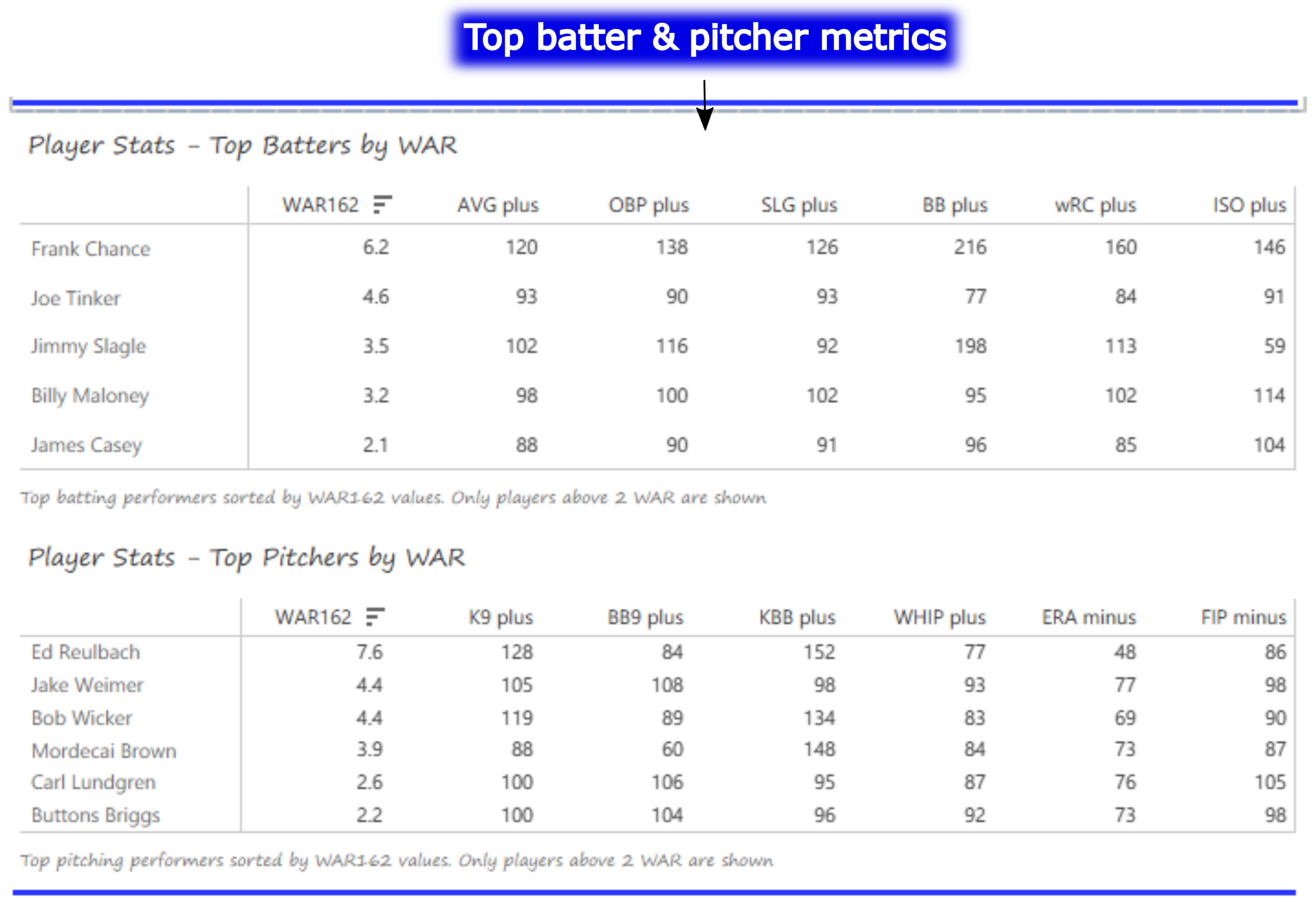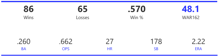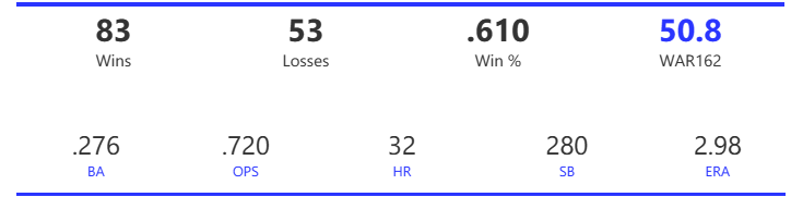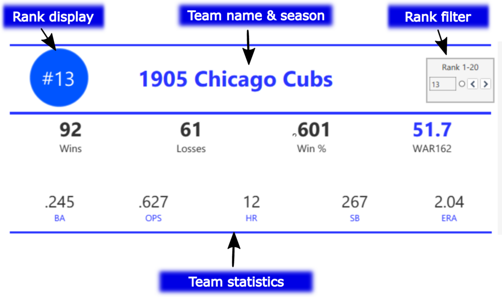 The dashboard provides a fun, easy way to discover new insights about the top teams of the decade (based on the WAR162 metric).