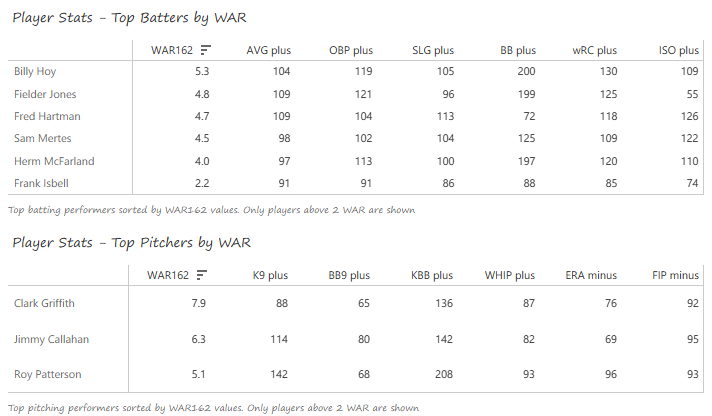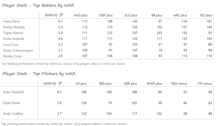 The first MLB Team Dashboard is available on Tableau Public – Top 20 Teams, 1901-1909. The dashboard provides the data for my Top 20 MLB Teams countdown, which starts today with teams #20 through #16 from the same decade. Here’s a look at the dashboard: